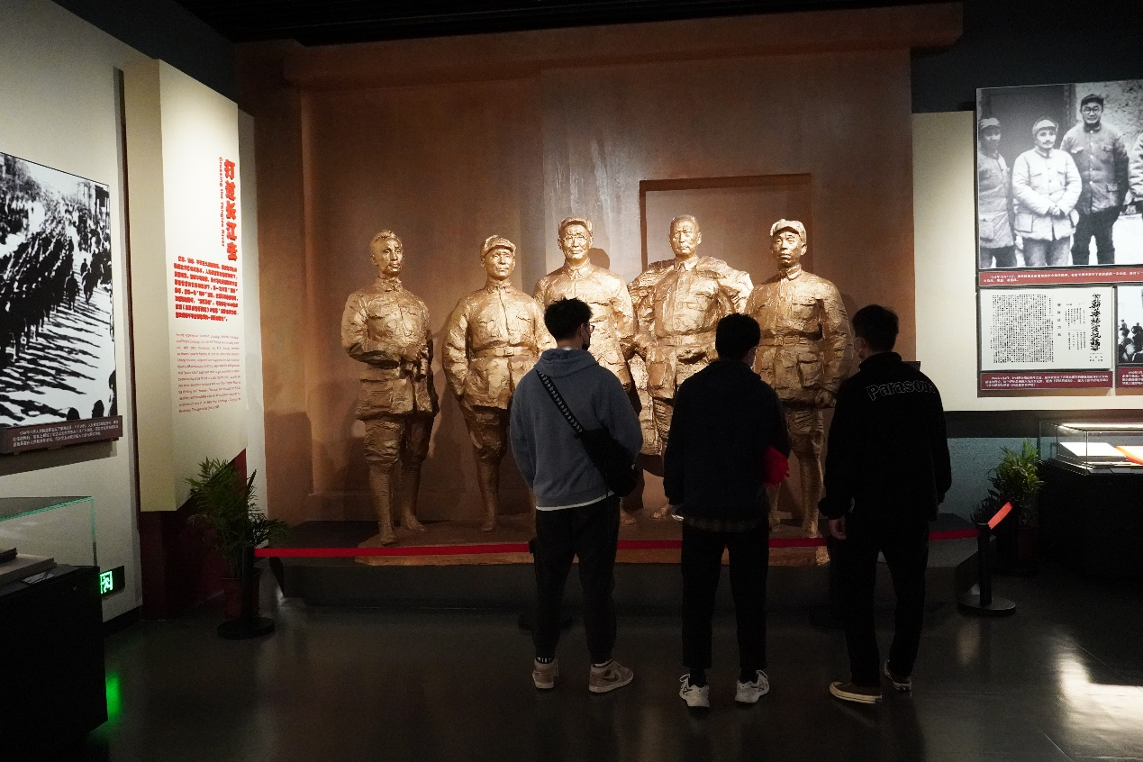 首先参观的是基本陈列馆:渡江战役胜利暨南京解放展。馆内详细介绍了渡江战役的各个历史节点。通过参观馆内的雕塑与历史影像等资料,同学们为中央军委的高瞻远瞩、运筹帷幄的伟大战略构想所震撼,更深刻的体会到了共产党人将革命进行到底的革命信念。