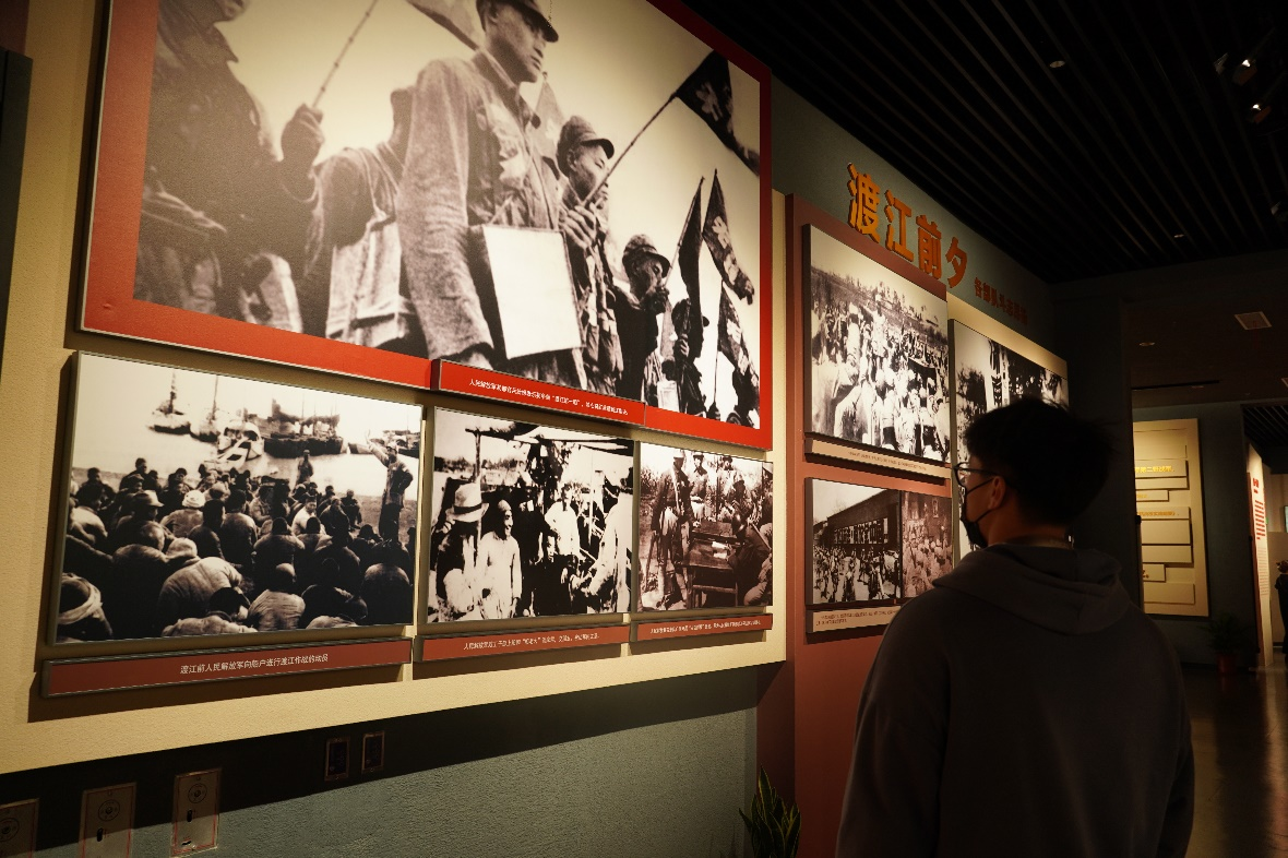 11月20日上午,同学们前往渡江胜利纪念馆进行参观。同学们首先在建党百年展板下合影,为此次参观拉开序幕。