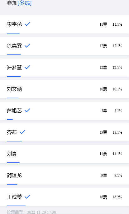 之后党支部秉持公平公正的原则进行无记名投票,支部副书记李奇洺线上统计并宣布了投票结果,最终确定王成赞、齐茜、徐嘉雯、许梦慧、宋宇朵、刘真6位入党积极分子为本学期支部拟发展对象。
