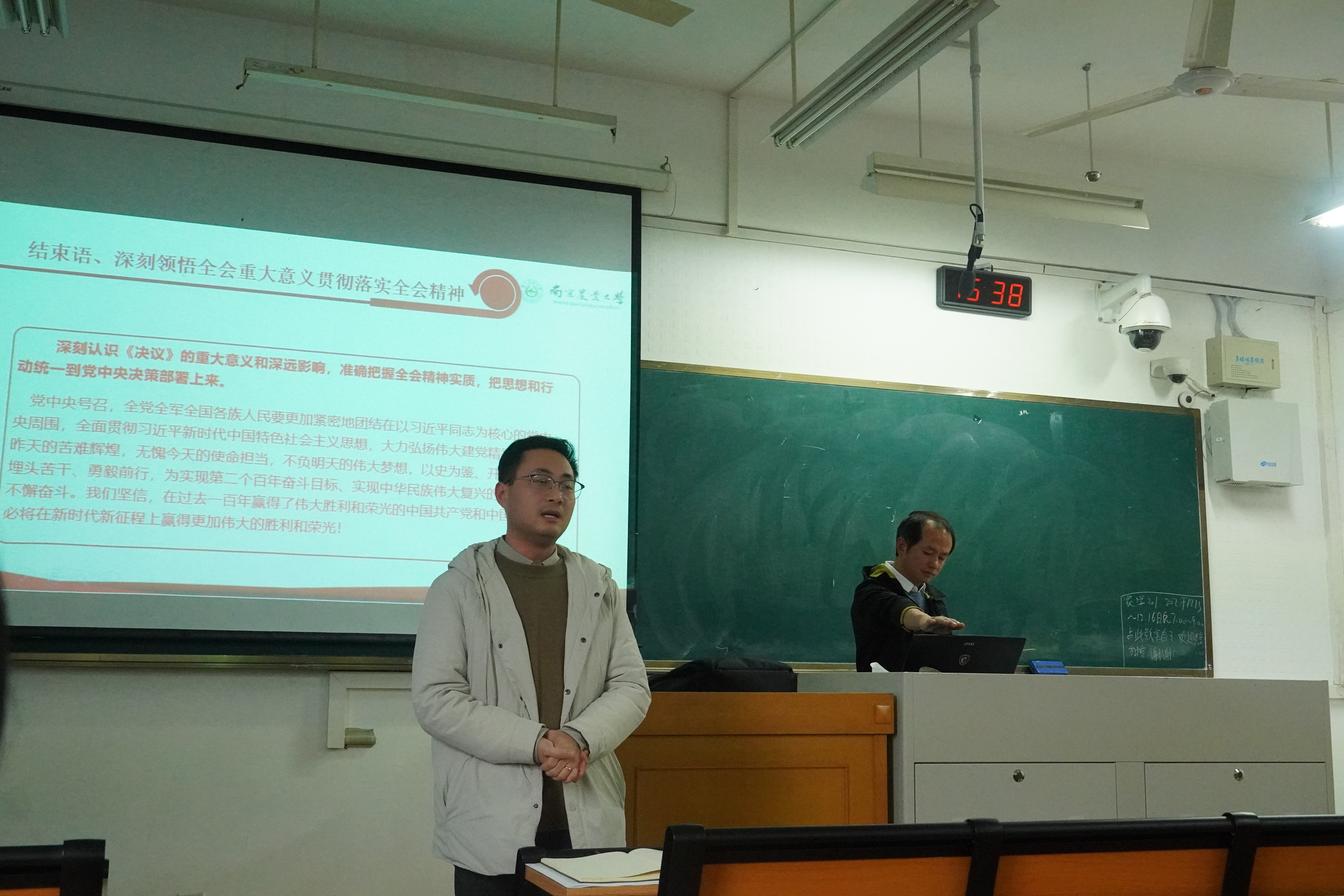 最后,吴峰对本次专题讲座进行总结。他说,在建党百年之际党中央召开十九届六中全会,全面总结了党的百年奋斗重大成就和历史经验,这是郑重的历史性、战略性决策。张树志老师的辅导讲座内容详实、重点突出,对于我们深入学习党的十九届六中全会精神具有很好的导学意义。希望全体师生党员和积极分子能够按照中央要求“学原文、读原著”再次认真研读十九届六中全会公报和《决议》文本,深刻领会精神、感悟思想、牢记使命、继往开来。