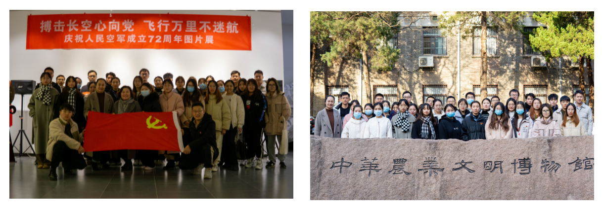 本次主题党日活动分为两个部分进行。首先,支部成员前往bwin必赢3003农博馆进行了参观学习,此次学习的主要内容是“庆祝人民空军成立72周年图片展”及农博馆的参观。通过学习,支部党员进一步了解了中国空军的英勇事迹及发展史,同时通过对农博馆的参观也增进了党员们对传统农业技术体系创立、发展和中国农业制度历史演变的了解。
