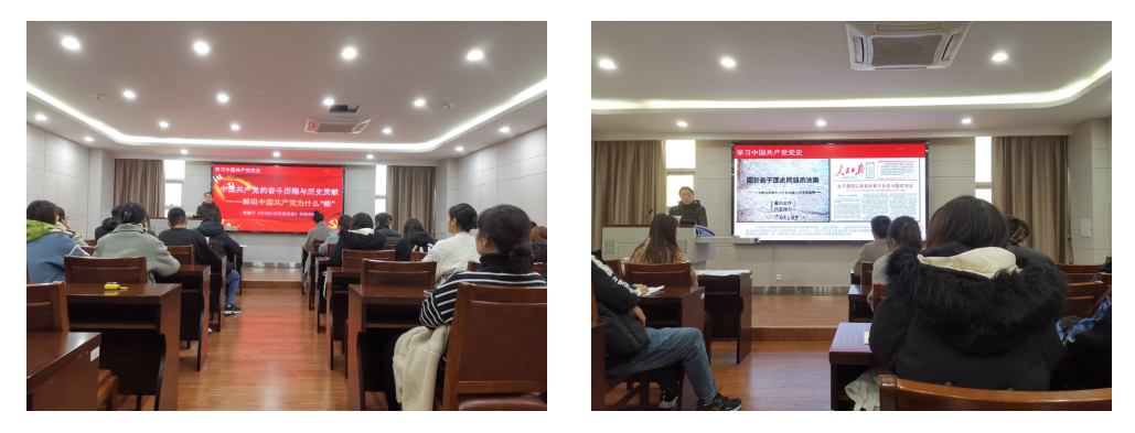 首先,张院长以“中国共产党的奋斗历程与历史贡献”为主题给支部党员上了一堂生动的党课。张院长从中国发展的四个阶段,三个决议,两个不能否定,三个具体系统地阐述了社会主义为什么好,中国共产党为什么行。张院长认为历史是最好的老师,我们学习党史,就是要做到:“学史明理、学史增信、学史崇德、学史力行”。张院长表示,社会主义为什么好,中国共产党为什么行是我们总结历史得出来的,我们党和国家的发展始终是以人民为中心的。作为一名党员,我们要在党史的学习中总结经验、展望未来,我们要传承好红色基因,接好历史的接力棒。党课结束后,鲍勇金同志谈到,在小时候家里用的大多都是一些有着“洋盆”、“洋钉”、“洋油”等词汇的生活用品,现在随着祖国的不断强盛,在家乡的方言里这些生活用品仍然会以“洋的形势”表现,他认为这是一种以前由于国力不强被国外文化影响的原因,如今在我们党的带领下,国家和人民的生活都越来越好,外国文化冲击对我们的影响也会越来越小。