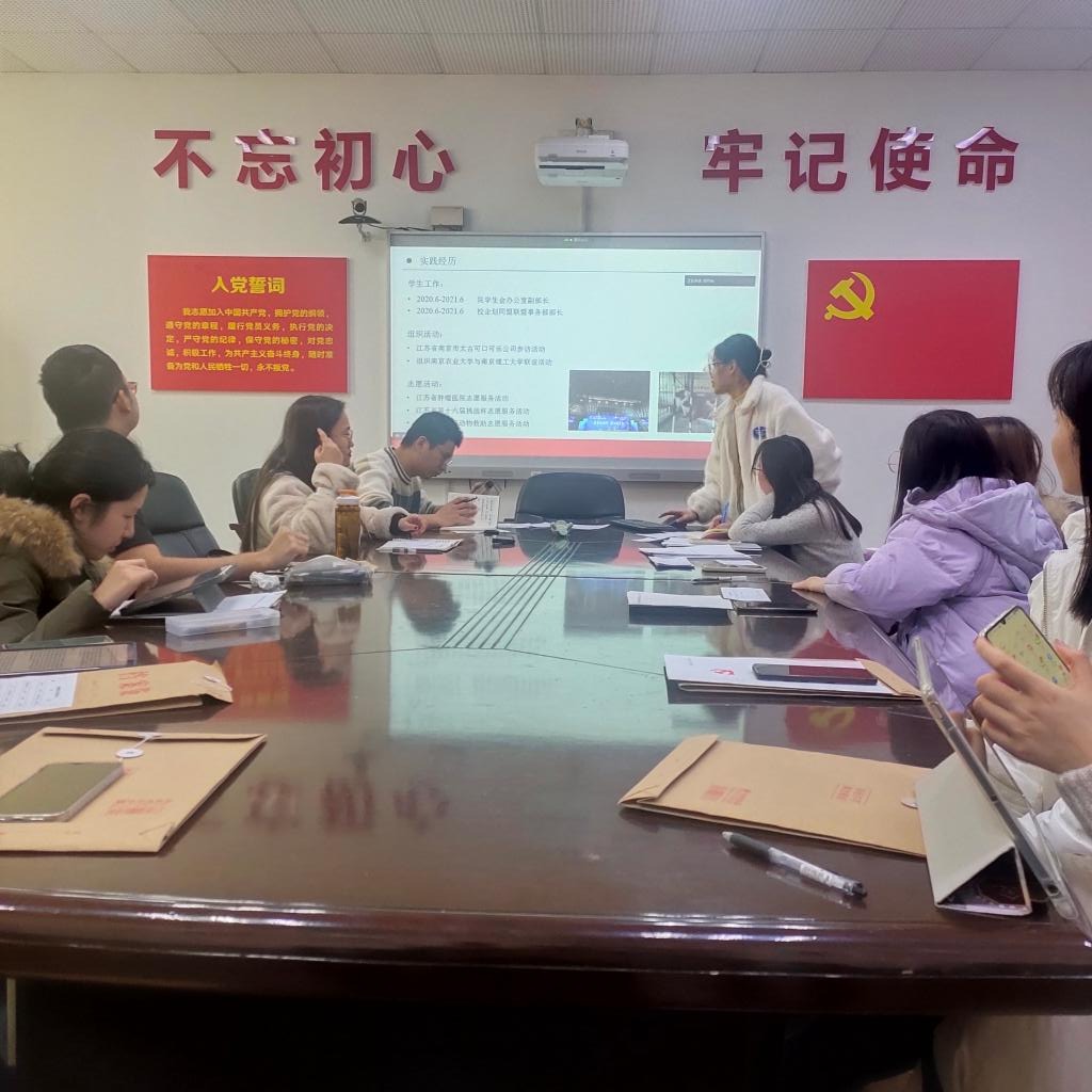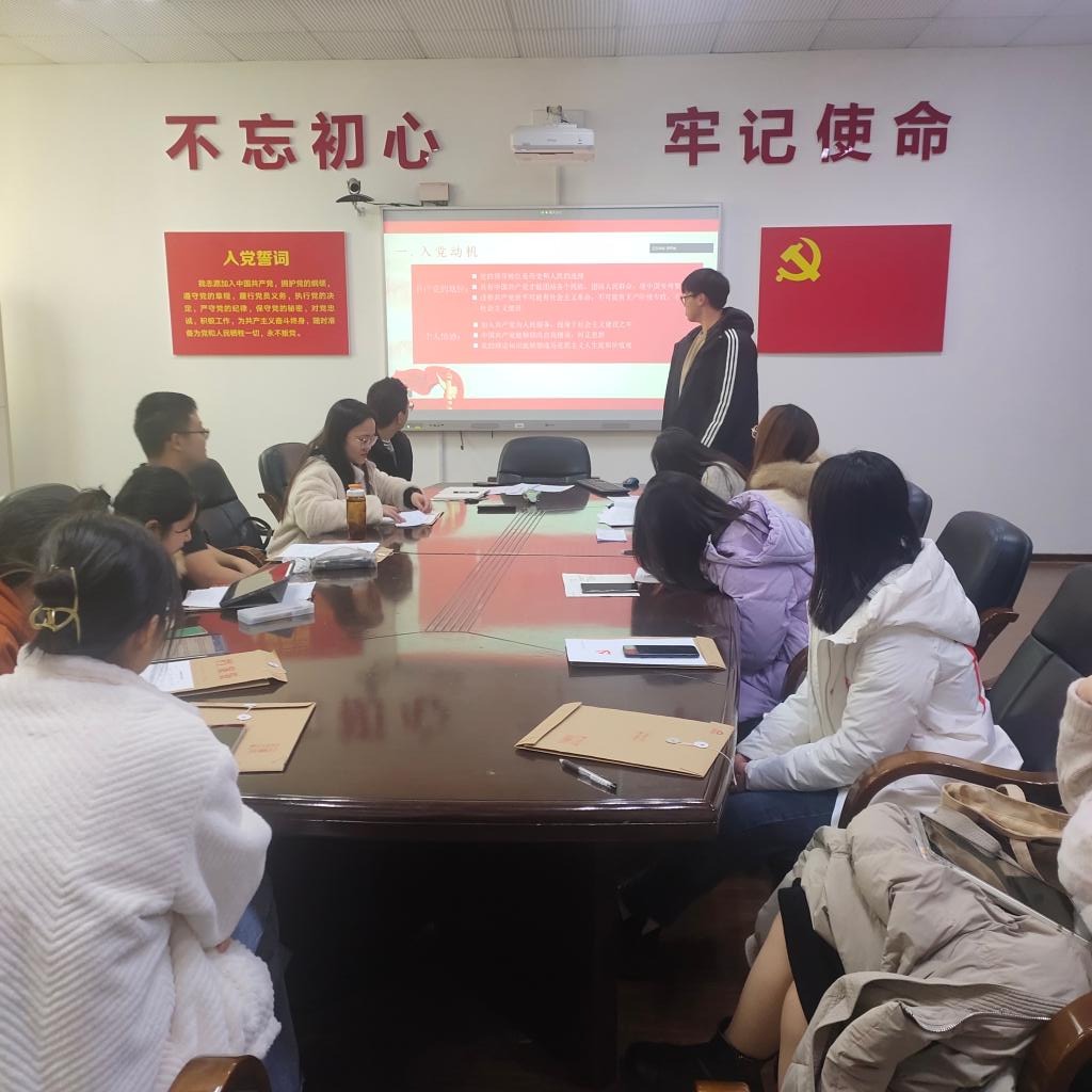 2021年12月28日,必赢线路检测3003本科生第一党支部在逸夫楼2040会议室召开讨论发展党员支部大会,支部全体党员、预备党员及4位发展对象按时到会,会议由支部书记邵传东主持。