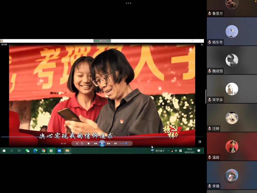 首先,支部党员观看了纪录片《榜样6》,主要学习了祁发宝、陈定昌、张桂梅三位英雄人物的事迹,祁发宝是卫国戍边的英雄团长,不畏艰险,保家卫国;陈定昌是中国科学院院士、导弹专家,为国铸盾,敢为人先;张桂梅是丽江华坪女高校长,勇挑重担,行善助学。他们都是中国共产党的忠诚拥护者,用自己的家国情怀为国家做出伟大的贡献,我们支部党员当以他们为榜样,在自己的岗位发光发热,发挥好党员模范带头作用。之后,支部书记温超带领全体党员集中学习了bwin必赢3003全体教师大会的会议精神。