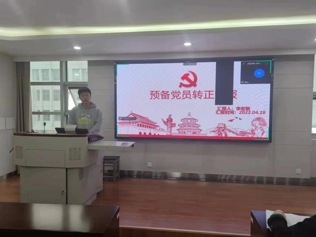 2022年4月28日下午15时,动物育种硕士生党支部本学期第一次支部大会在逸夫楼5077召开,本次会议由支部书记汪薇主持,支部党员与入党积极分子参会。