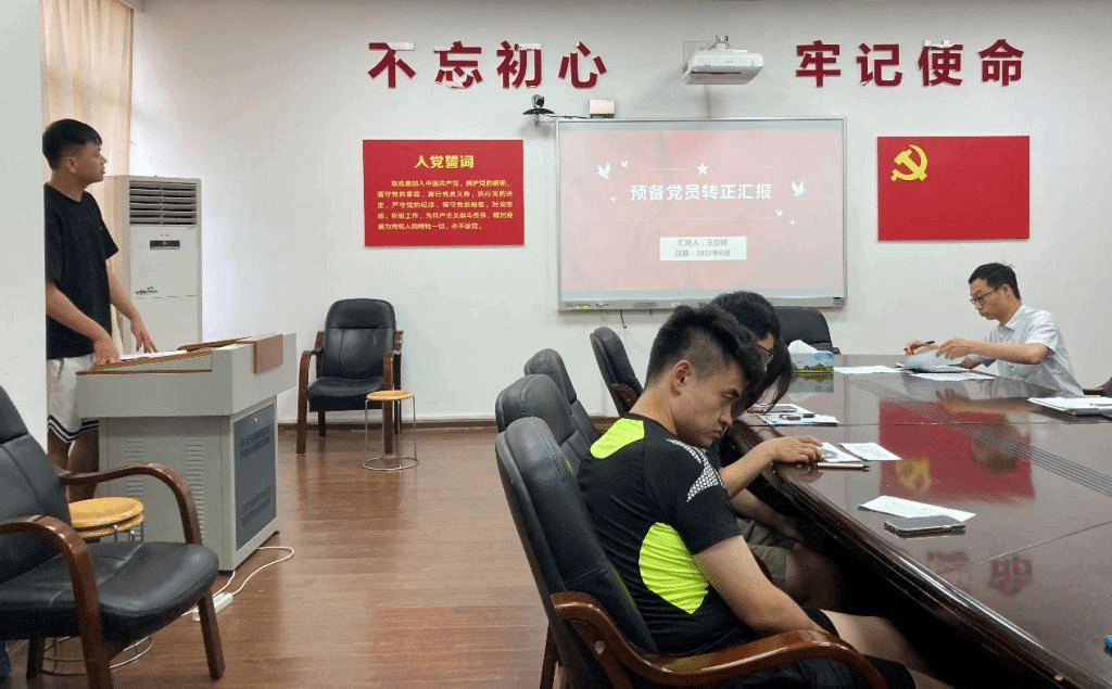 会议严格按照党组织党员转正的程序,对汪子怡、张佳琦、王世祺3名同志的转正问题逐一进行了讨论。首先,3名同志从自身对党的认识、入党动机、预备期的表现等方面向党组织进行了汇报;接着,由支部组织委员发表考察意见以及全体党员对汪子怡、张佳琦、王世祺3名同志进行提问并指出他们的不足之处。在发表完考察和评价之后,支部所有正式党员以无记名投票的方式进行表决,一致同意汪子怡、张佳琦、王世祺3名同志转为中共正式党员。