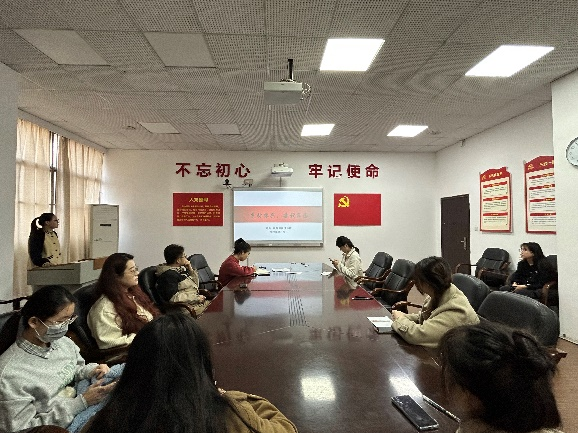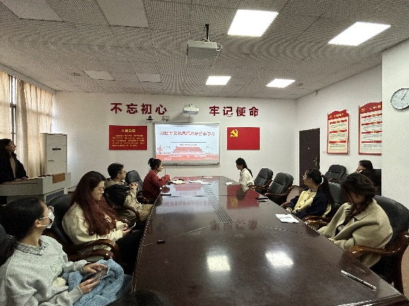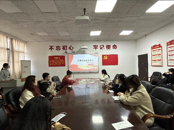 曾韬代表小组分享“习近平文化思想总结分享学习”,她说作为青年党员需要进一步提高政治站位,强化责任担当;坚定文化自信和价值观自信、秉持开放包容、坚持守正创新,向世界讲好核心价值观教育的中国故事。