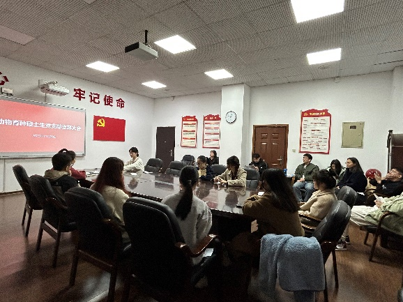 11月28日中午,动物育种硕士生党支部于逸夫楼2040召开支部会议推选发展对象,进行学习分享,会议由支部书记汪薇主持。