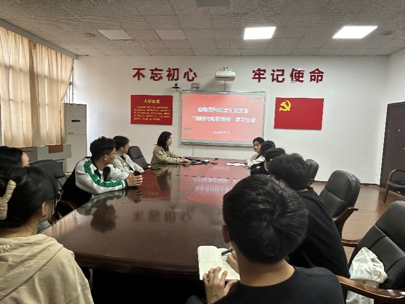 4月1日下午,动物育种硕士生党支部于逸夫楼2040召开“新时代南农精神”学习分享会,会议由支部书记汪薇主持,布置了支部本学期的学习和工作安排。