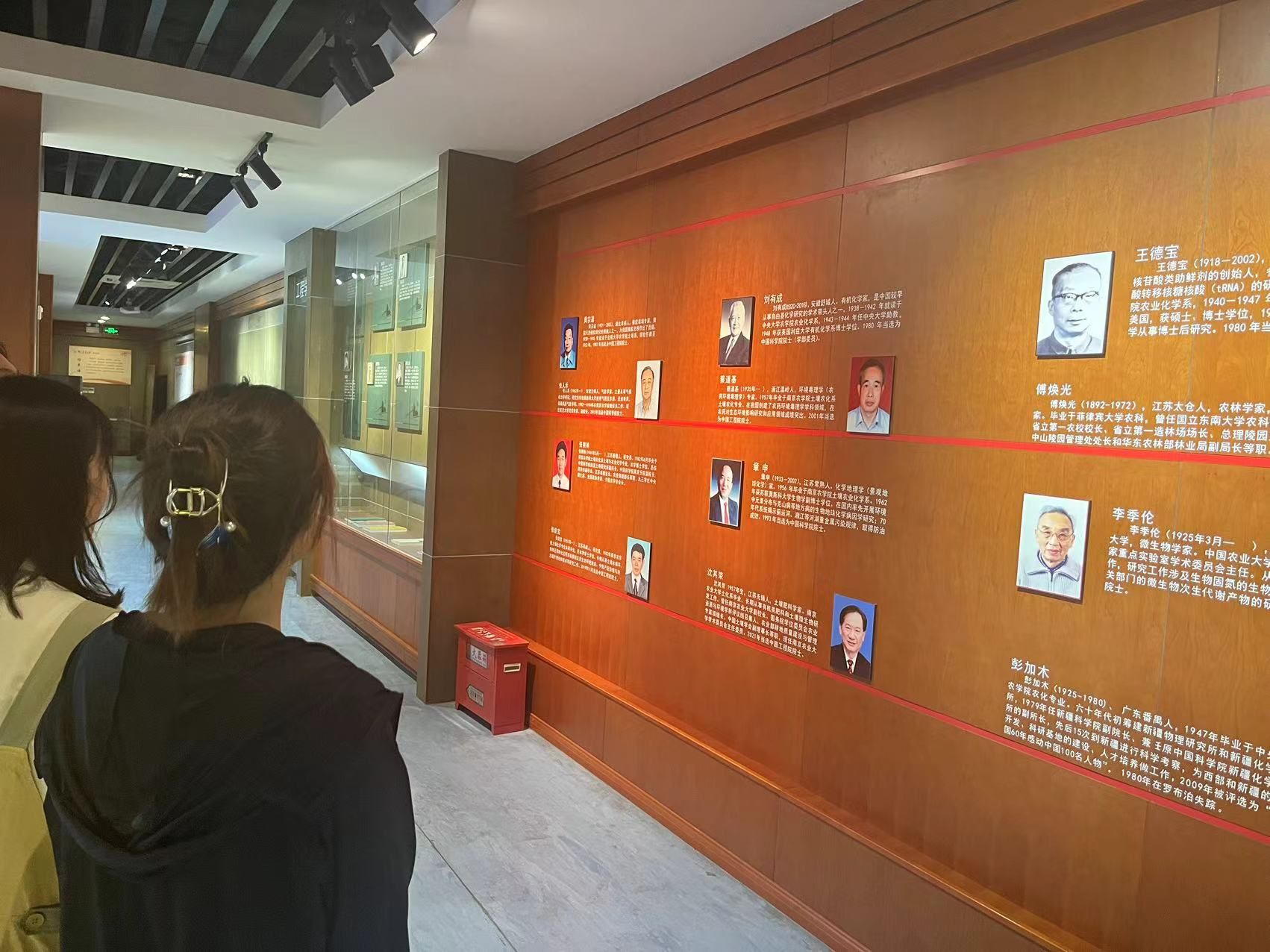 随后,通过参观校史馆,党员们通过一张张生动详细的校史图片和文字,梳理了南农发展历程和重大事件,全面了解了南农历史沿革与办学理念。馆内邹秉文、金善宝、樊庆笙等先生们的雕塑及事迹也加深了大家对“诚朴勤仁”南农精神的理解,深刻感悟了先辈们开农学之先河的伟大信念。