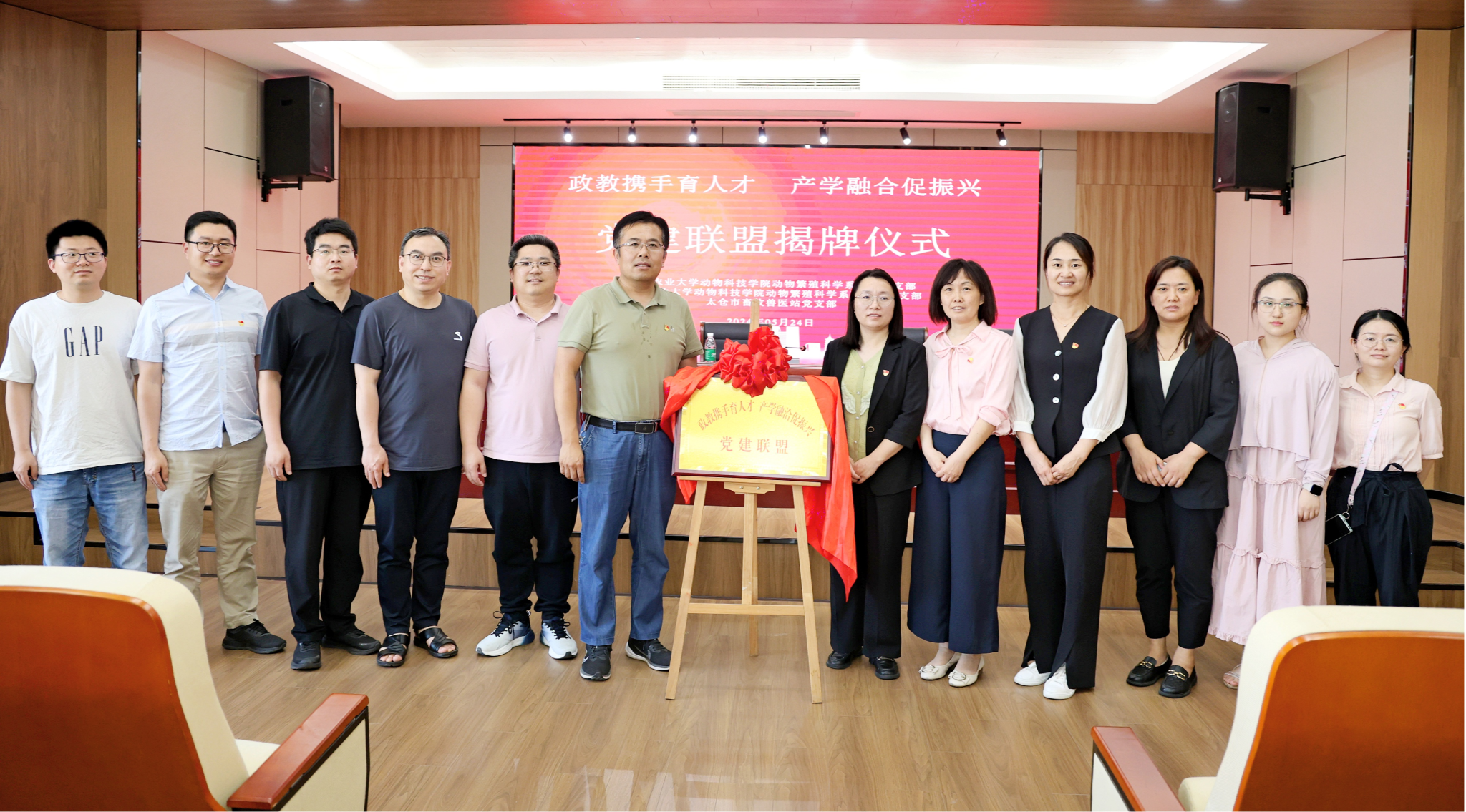 首先,必赢线路检测3003动物繁殖系教师支部书记茆达干教授和太仓市畜牧兽医站支部书记魏宗友为“政教携手育人才 产学融合促振兴”党建联盟揭牌。
