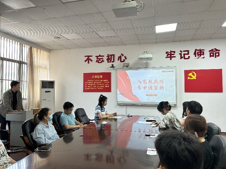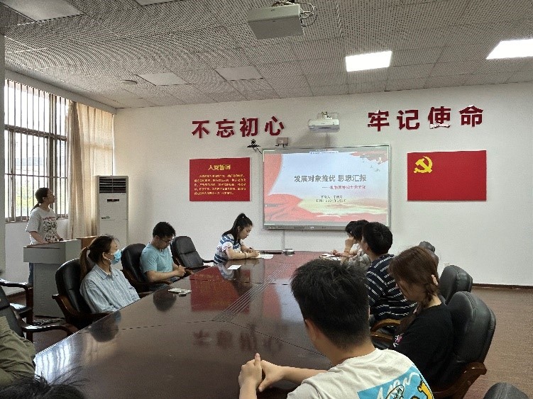 于澳晨、曹德入、陶旭哲和张霁雨四位积极分子进行思想汇报,介绍自己的个人基本信息、学习、活动参加和思想情况,经支部党员提问考察和无记名投票,本支部推选于澳晨和曹德入为发展对象。