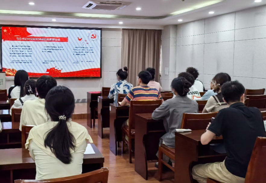 在完成预备党员转正暨接收预备党员同志会议议程后,下面由金巍书记主持党课党纪活动。金书记引用习近平总书记对党纪建设的重要论述,指出:“严明党的纪律,首要的就是严明政治纪律。党的纪律是多方面的,但政治纪律是最重要、最根本、最关键的纪律”。遵守党的政治纪律是遵守党的全部纪律的重要基础。他表示:“全体党员要真学真信、知纪守纪。每一个共产党员特别是领导干部都要‘增强纪律意识、规矩意识,进一步养成在受监督和约束的环境中工作生活的习惯’。”
