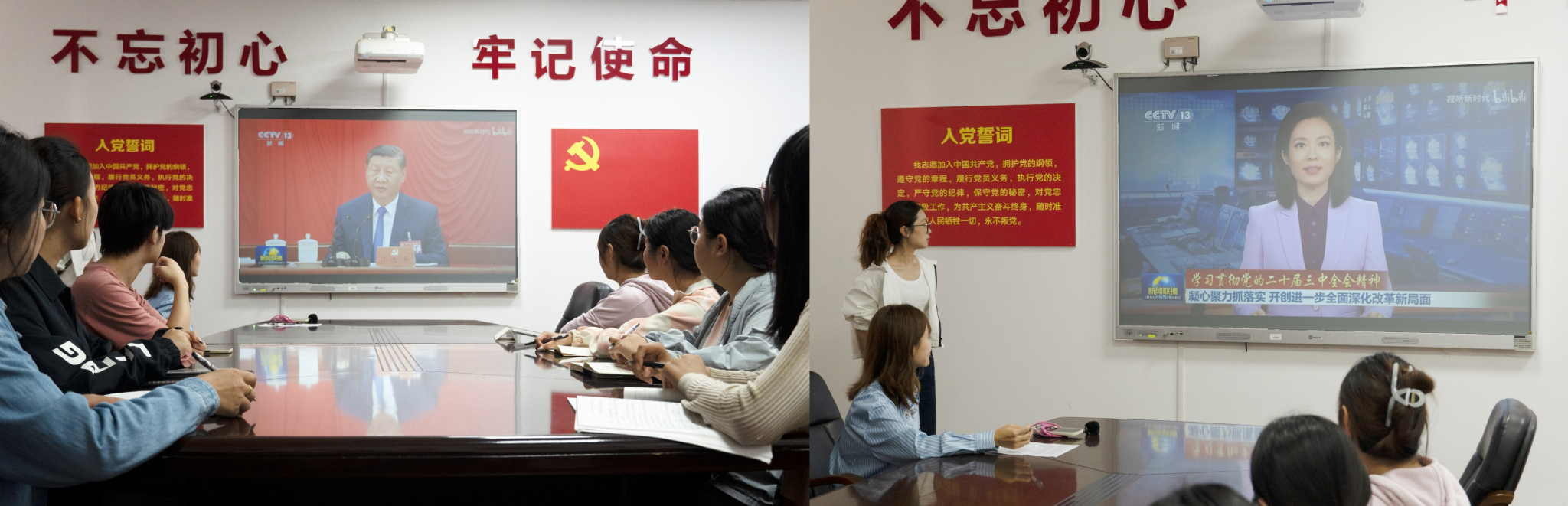 会议第一项,副书记刘亚萍组织参会成员通过观看新闻报道、讲解的形式进行理论学习党的二十届三中全会精神。党的二十届三中全会提出进一步全面深化改革总目标,继续完善和发展中国特色社会主义制度,推进国家治理体系和治理能力现代化。