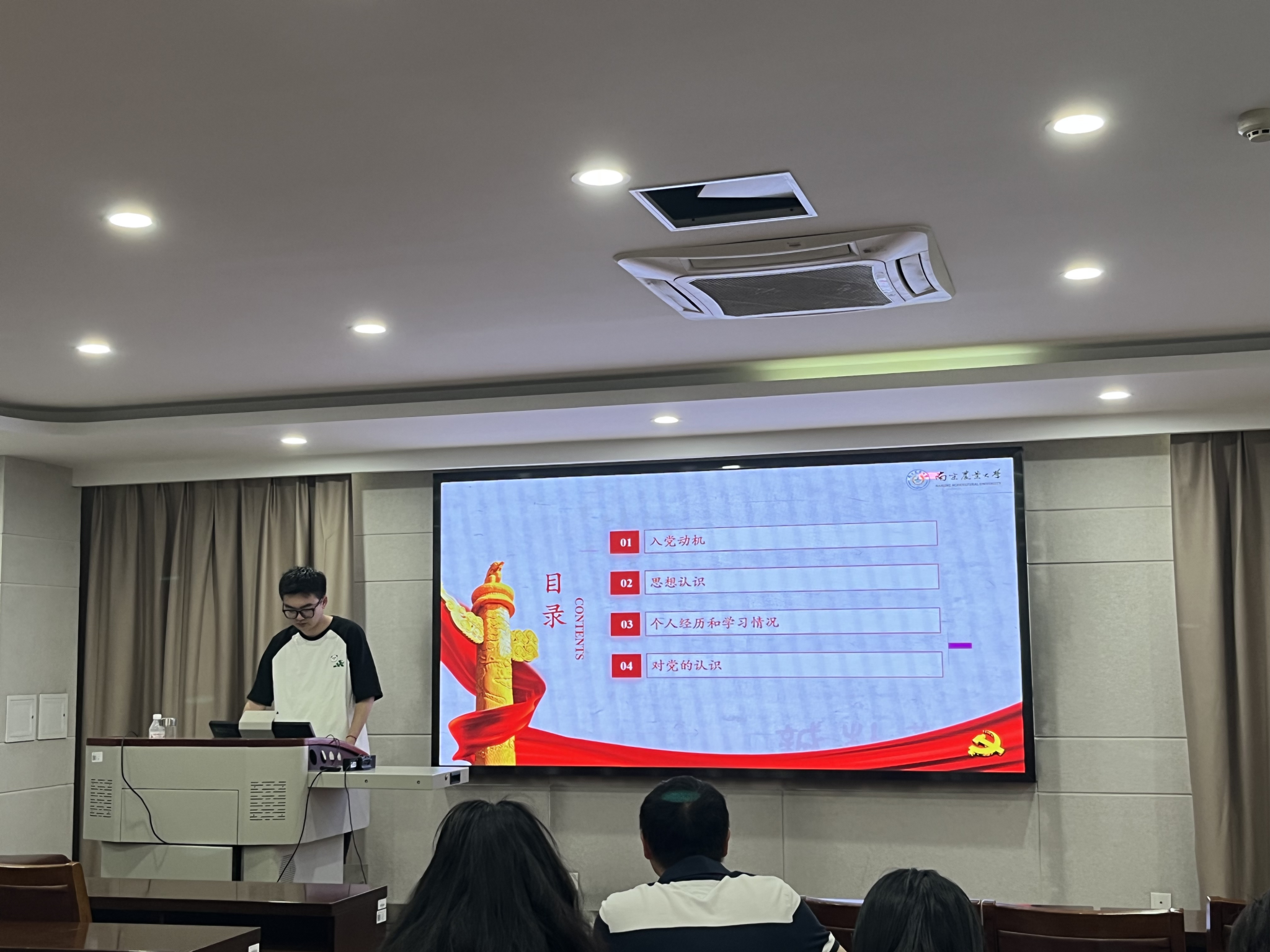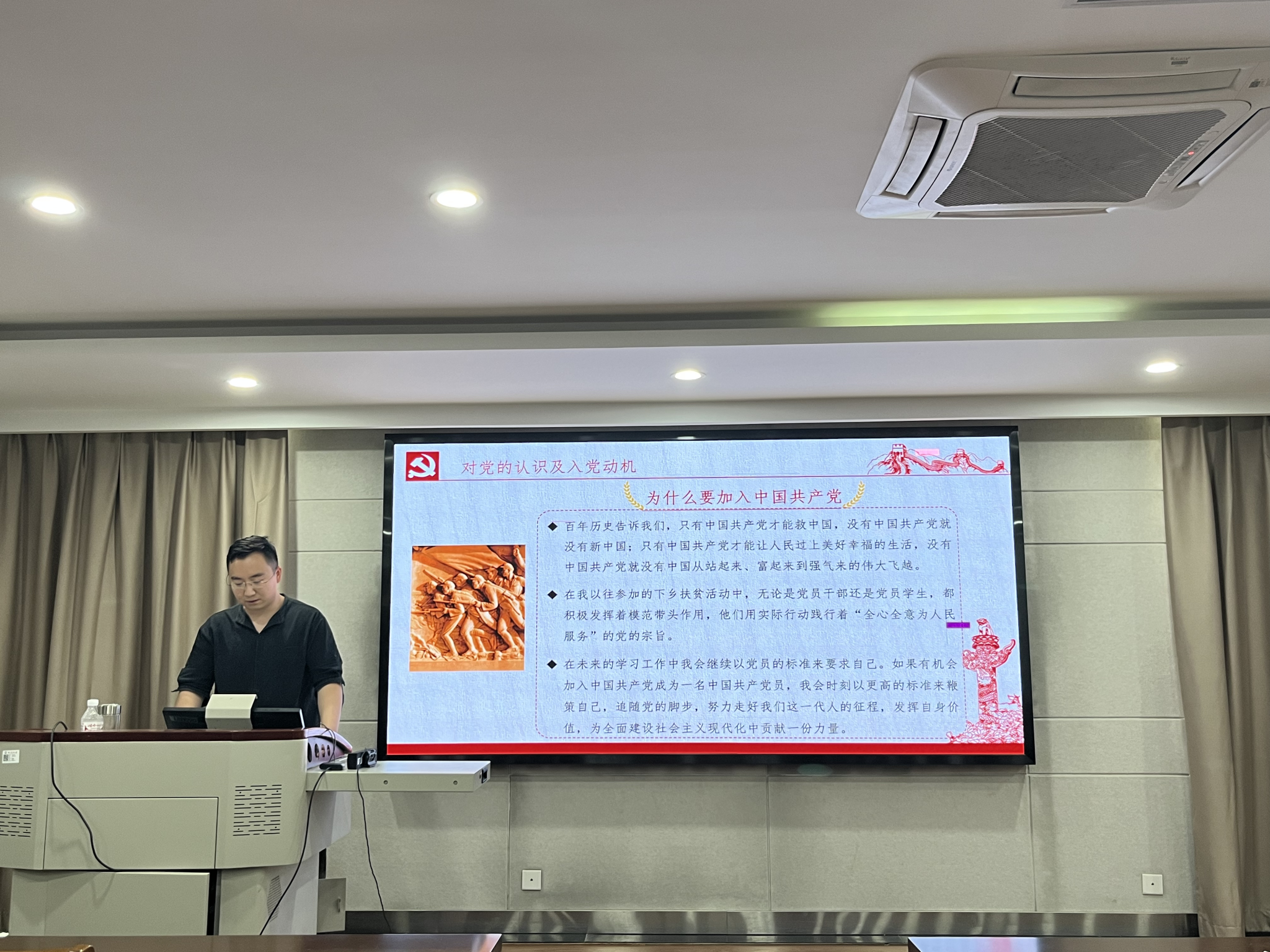 首先,温超老师强调本次会议纪律,请大家慎重对待本次推选大会,为组织推选合格且优秀的发展对象。随后向大家依次介绍陈俊杰、刘健良、刘诗倩、王胜家4位同志的基本情况,并由其分别从入党动机、思想认识、个人经历和学习情况、对党的认识等方面做自我陈述。