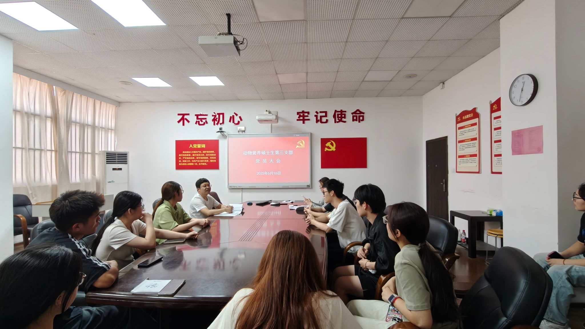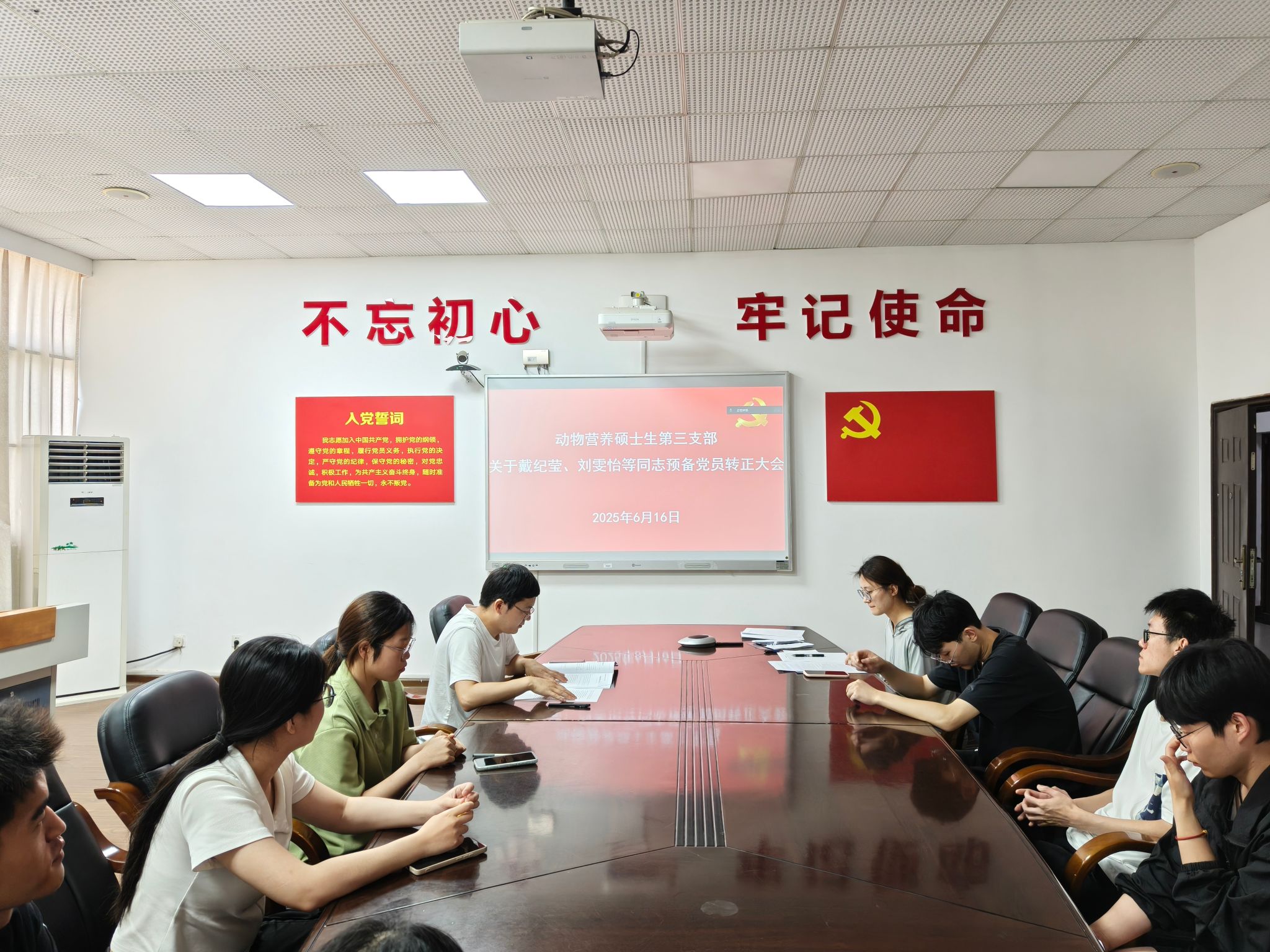 2025年6月16日,必赢线路检测3003动物营养硕士生第三党支部在逸夫楼2040召开党支部大会,大会分为三项议程:推选必赢线路检测3003党委委员候选人、预备党员接收、预备党员转正;会议由动物营养与饲料科学系余凯凡同志筹备并主持,支部24位党员参加此次支部大会。