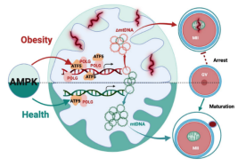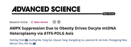 母体肥胖目前在家畜动物生产和人类生殖过程中广泛存在,且其对胎儿和子代的生长代谢健康造成严重损害。在前期研究中,陈彦廷课题组观察到母体肥胖可引起新生和成年子代脂肪细胞、骨骼肌纤维的线粒体氧化磷酸化功能损伤。同时,该线粒体损伤可追溯至怀孕之前的成熟卵母细胞中(Nature Communications, 2021)。由于成熟卵母细胞中的线粒体DNA(mtDNA)可以通过受精过程遗传给子代,且mtDNA是调节线粒体产生能量和组织细胞分化发育的关键亚细胞器。因此,卵母细胞mtDNA突变可显著损害胎儿和子代组织器官的线粒体功能,并引起机体糖脂代谢健康,其损伤程度已受到学界广泛的关注。