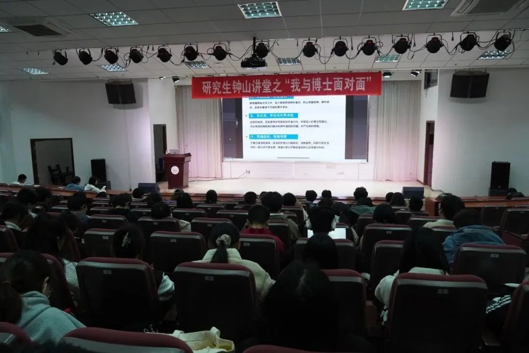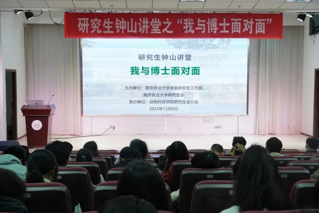 12月8日下午14:00,研究生钟山讲堂之“我与博士面对面”活动在教四楼报告厅顺利举办。本次活动邀请了在科研领域中取得优异成绩的两位博士生代表与同学们进行分享,他们分别是2020级动物遗传育种与繁殖专业博士研究生张玉、2022级动物营养与饲料科学专业博士研究生王凯。活动中大家积极交流,气氛活跃。