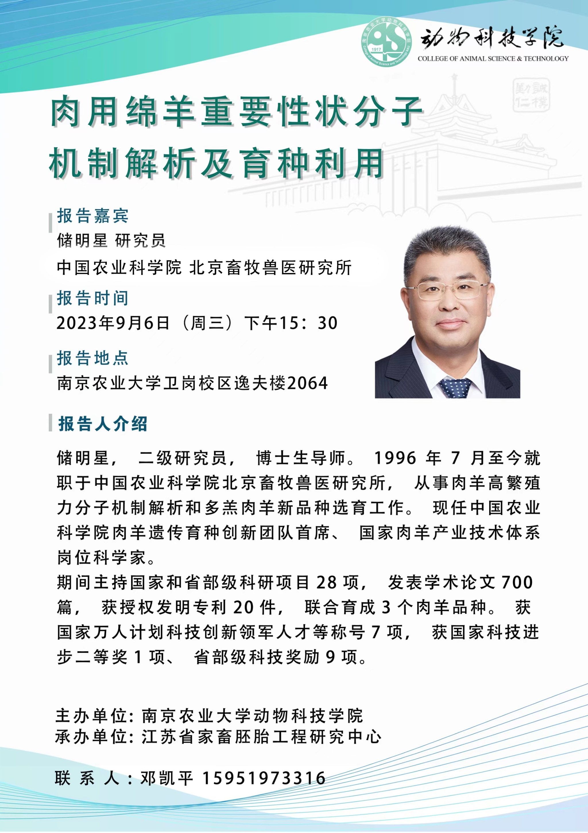 预告|中国农业科学研究院研究员储明星讲述“肉用绵羊重要分子机制解析及育种利用”