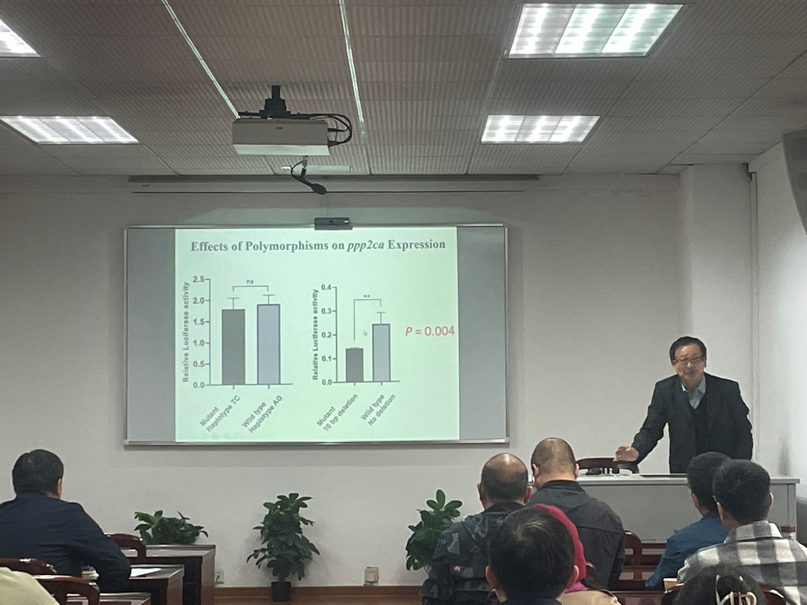 岳根华教授先是介绍了亚洲鲈鱼的遗传学研究及其在研究所的总体情况。岳根华教授接着分享了其研究团队在亚洲鲈鱼遗传学改良的突破,可通过遗传基因学技术提高亚洲鲈鱼的生产效率,从而提供高质量的鱼类。最后,岳根华教授根据自己的自身经历,讲述了如何高效地发表高水平文章并给同学们介绍了一些写作和投稿技巧。