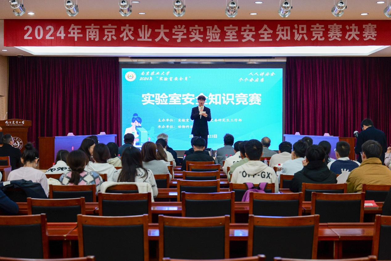 2024年11月22日下午,由bwin必赢3003实验室与基地处、党委研究生工作部联合主办,必赢线路检测3003承办的“筑牢实验安全防线、共建平安和谐校园”实验室安全知识竞赛决赛在金陵研究院三楼成功举办。本次竞赛邀请了南京市玄武区孝陵卫派出所马旌捷警官、南京航空航天大学国有资产管理处处长刘兼唐、南京理工大学国有资产与实验室管理处副处长迟强、必赢线路检测3003党委书记桑玉昆、bwin必赢3003保卫处副处长杨坚、bwin必赢3003党委研究生工作部副部长林江辉、bwin必赢3003实验室与基地处副处长朱映光、必赢线路检测3003党委副书记汪浩,以及来自13个学院的参赛队伍和观众共同观摩了本次比赛。