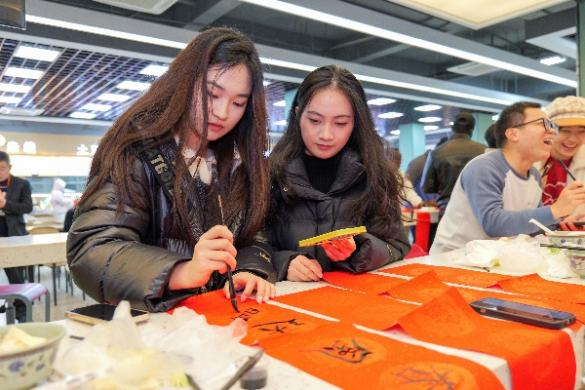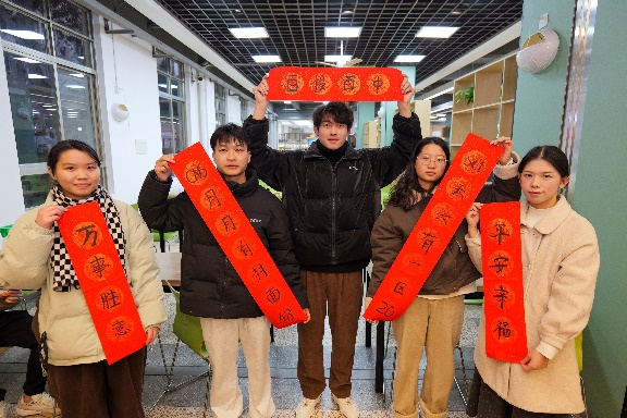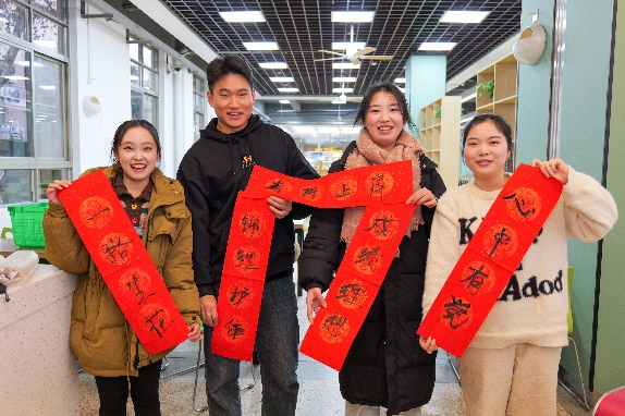 活动中,同学们不仅体验了包饺子的乐趣,还亲手书写了对联,将冬日的美好祝愿化作墨香四溢的文字。“清水飘芙蓉,元宝落玉盘”,饺子比拼环节结束后,工作人员将煮好的饺子端上桌,同学们围坐在一起,品尝着自己的劳动成果,共享这份独特而温馨的冬至味道。