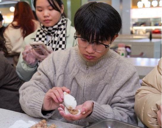 “天时人事日相催,冬至阳生春又来。”同学们通过包饺子这一传统活动庆祝冬至的到来。热气腾腾的饺子上桌,标志着活动圆满落幕。在活动中,同学们不仅亲身体验了传统文化的魅力,还在竞技与合作中加深了友谊,增强了团队精神。此次活动在寒冷的冬日为同学们带来了家的温暖,为繁忙的学术生活增添了一份宁静与和谐,让在校的同学们充分感受到冬至的温馨氛围。