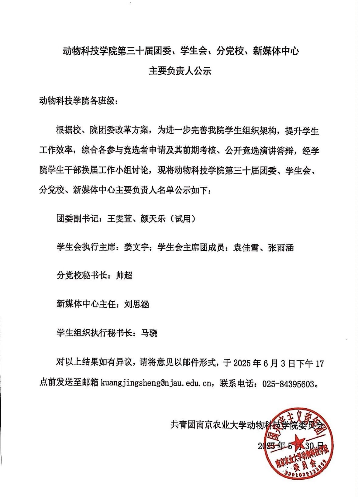 必赢线路检测3003第三十届团委、学生会、分党校、新媒体中心主要负责人公示
