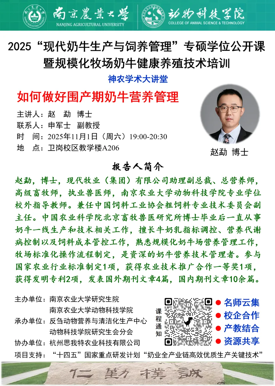 本课程(培训)计划每年秋冬季定期开设,旨在持续为国家培养奶业科技人才,诚邀校外人员免费参与。我们期待更多具有社会担当企业加入其中,携手共建奶业人才培养平台,助力国家奶业高质量发展。