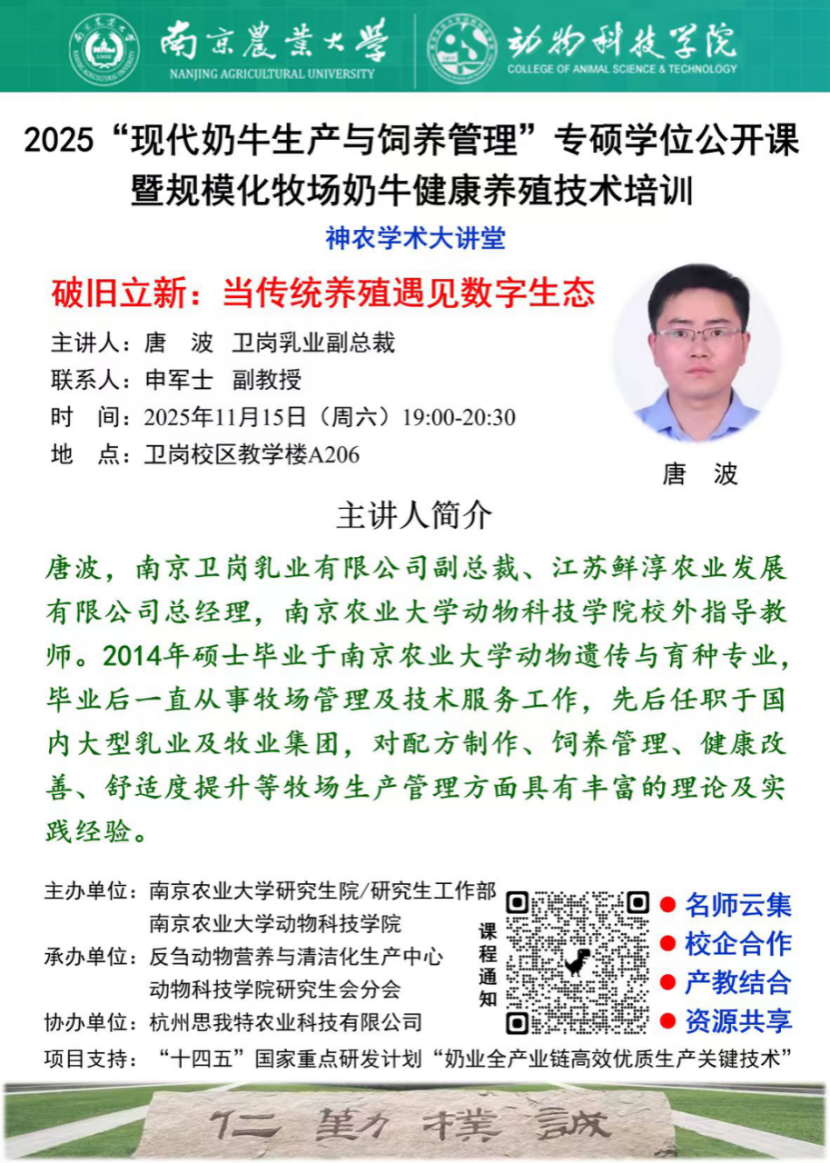 本课程(培训)计划每年秋冬季定期开设,旨在持续为国家培养奶业科技人才,诚邀校外人员免费参与。我们期待更多具有社会担当企业加入其中,携手共建奶业人才培养平台,助力国家奶业高质量发展。
