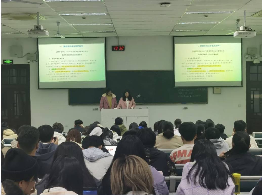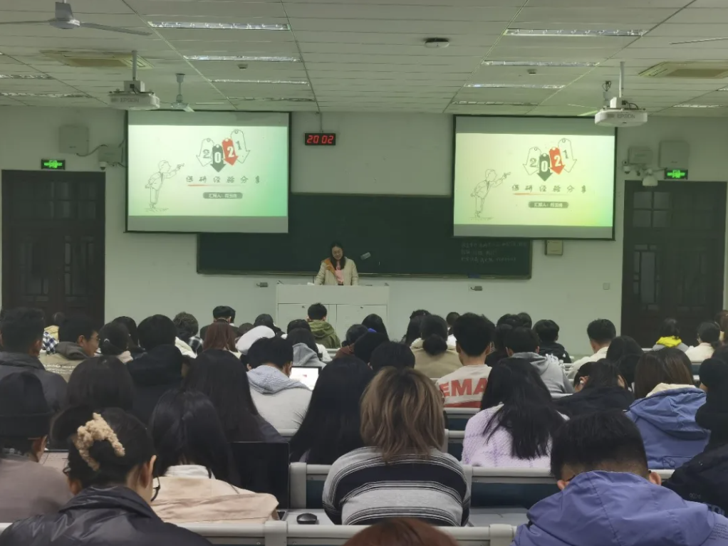 成功保研浙江大学的金宏莉和孙露学姐从保研流程、夏令营准备,简历制作等方面分享了保研经验,着重介绍了浙大与中农的面试流程与面试细节,涉及心态调节问题、SRT问题等。同时,学姐们还强调了现阶段需要关注的内容,如GPA、排名、英语成绩等。最后学姐们分享了几点切实有效的感想与建议,同学们深受启发。