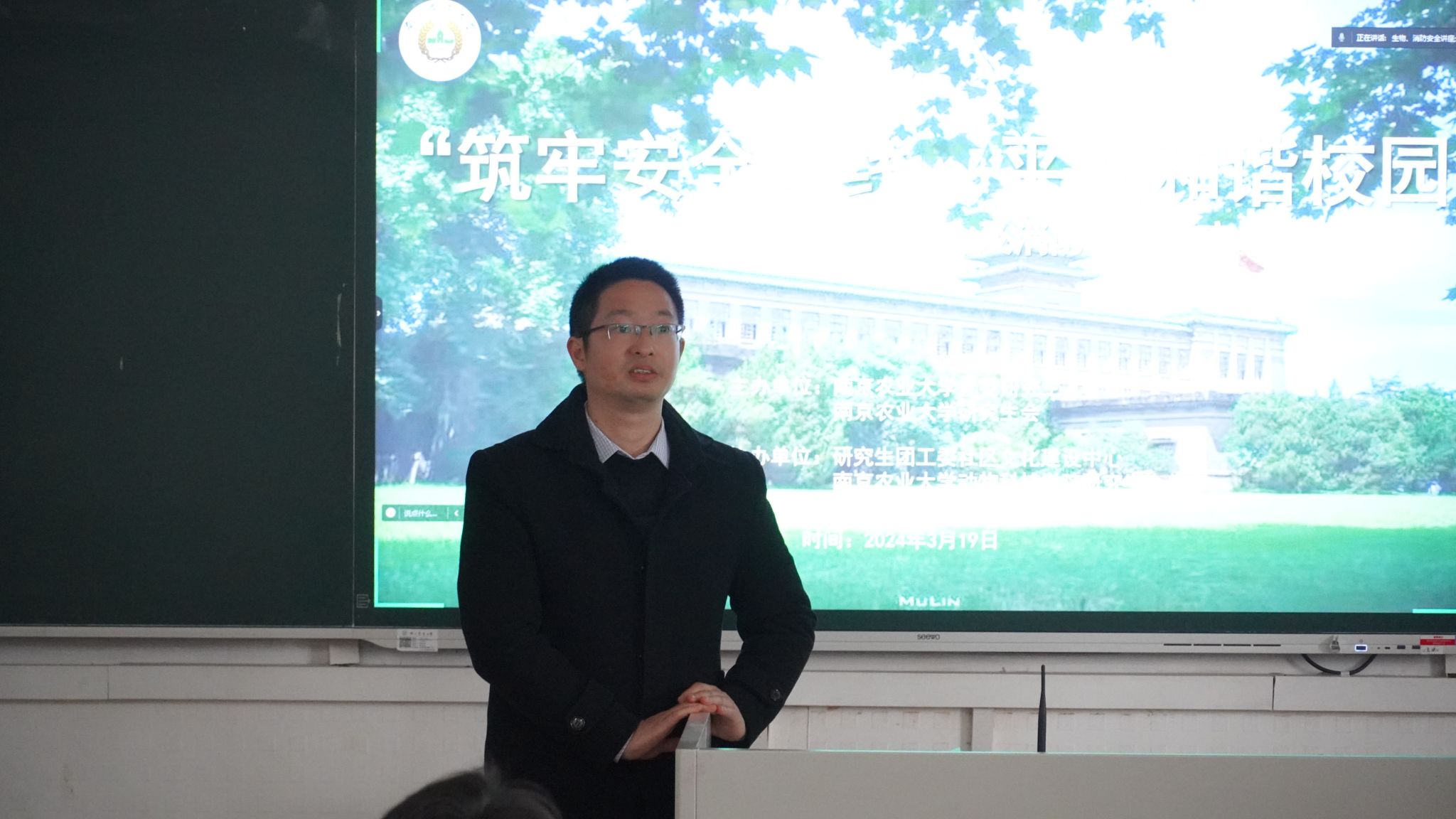 为进一步加强全体研究生的生物安全和消防安全防护意识,提升实验室生物安全管理水平,必赢线路检测3003于3月19日上午在教学楼C103举行了“筑牢安全防线,平安和谐校园”安全知识讲座,副院长张艳丽、副书记汪浩和校保卫处消防安全科科长程强参加了会议。