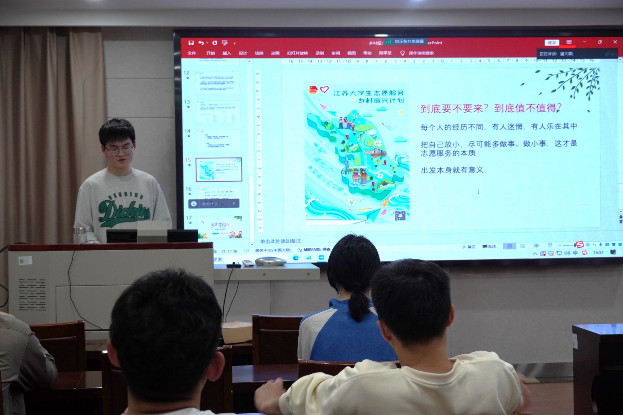 顾晓明对“三支一扶”政策和自己参加江苏大学生志愿服务乡村振兴计划的经历和感受进行了解详细介绍,并对公务员考试的现状进行了分析,还向大家分享了公务员备考的经验和心得,为同学们在报考公务员方面给出了建议。随后,顾晓明就在场同学提出的问题进行一一解答,为同学们公务员备考提供新的思路。