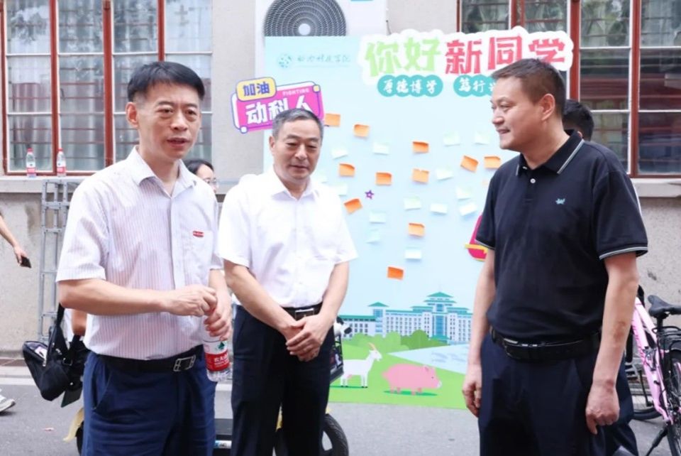 9月8日下午,校党委书记王春春、党委副书记刘营军、院党委书记桑玉昆、院党委副书记汪浩等领导来到迎新现场,了解2024级新生报道情况,并对迎新工作人员的工作内容进行指导。此外,我院安排志愿者协助新生,从“入校到入寝”提供全程的志愿服务,让新生感受到动科大家庭的温暖。我院桑书记和汪书记对新生宿舍进行了走访,了解他们的入住情况和生活需求,与学生深入交流,鼓励他们勇敢面对挑战,珍惜大学时光。