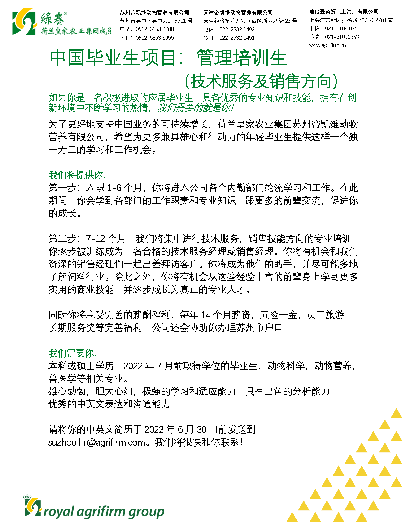 中国毕业生项目:管理培训生 (技术服务及销售方向)