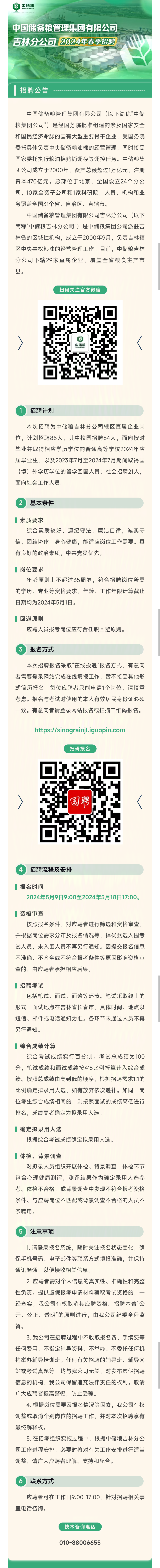 中国储备粮管理集团有限公司吉林分公司直属企业2024年春季招聘公告