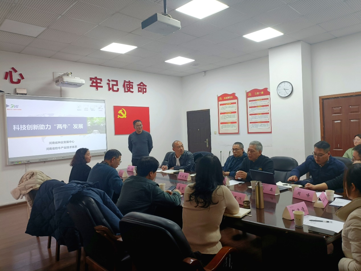 2023年2月22日下午,河南省种业发展中心副主任张震等一行8人来我院走访交流。学院养牛学教研室的韩兆玉教授、蔡亚非教授、李惠侠教授、李莲副教授以及部分研究生了参加座谈会。