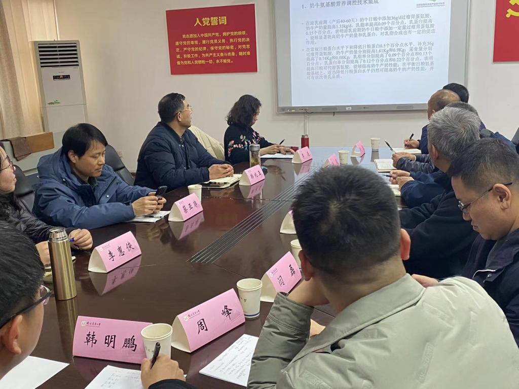 韩兆玉教授作为江苏省现代农业(奶牛)健康养殖创新团队岗位专家,首先介绍了江苏省现代农业(奶牛)产业技术体系建设情况并且对养牛教研室整体情况加以介绍。李莲副教授分享了农业农村部牛冷冻精液质量监督检验测试中心(南京)的概况以及相关业务情况。蔡亚非教授对江苏省奶牛DHI测定中心的运行情况做了简要介绍。河南省种业发展中心的闫磊科长介绍了河南省奶牛产业技术体系建设情况,并表示河南省奶牛体系建设的整体思路是要通过科技创新来引领奶业发展,重点以信息化为抓手,推动DHI测定工作、品种登记工作和生鲜乳第三方监测体系等。会上双方还就江苏省和河南省奶业发展面临的问题与挑战展开深入交流,就奶牛种业创新与新技术研究与推广合作达成初步协议。