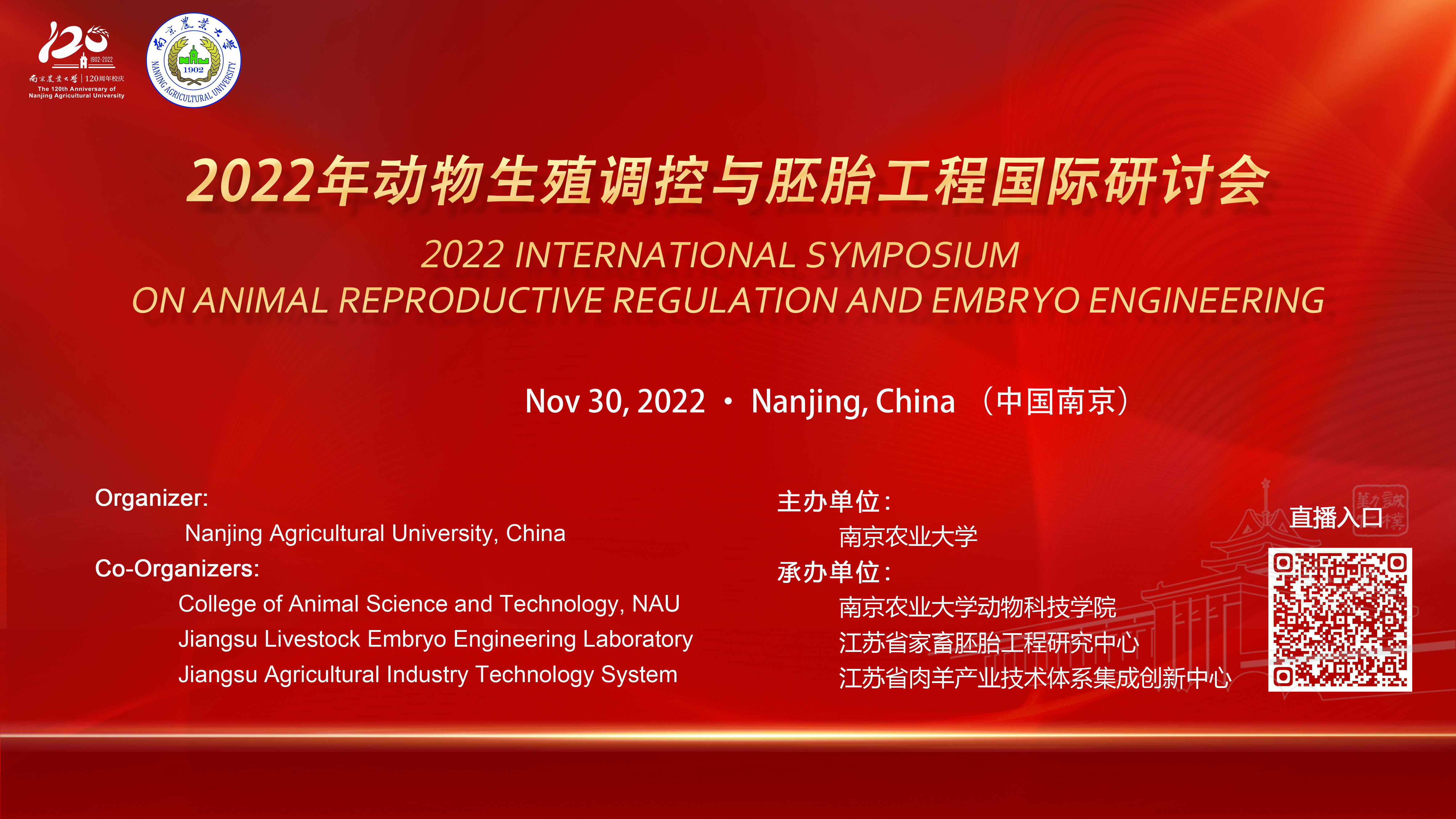 2022年11月30日,由bwin必赢3003主办,必赢线路检测3003、江苏省家畜胚胎工程研究中心、江苏省肉羊产业体系集成创新中心共同承办的2022年“动物生殖调控与胚胎工程国际研讨会”以线上线下的形式成功召开。来自国内外的12所高校和科研院所的科学家围绕动物生殖调控、胚胎工程与基因编辑等前沿技术进展和应用进行了分享和研讨。