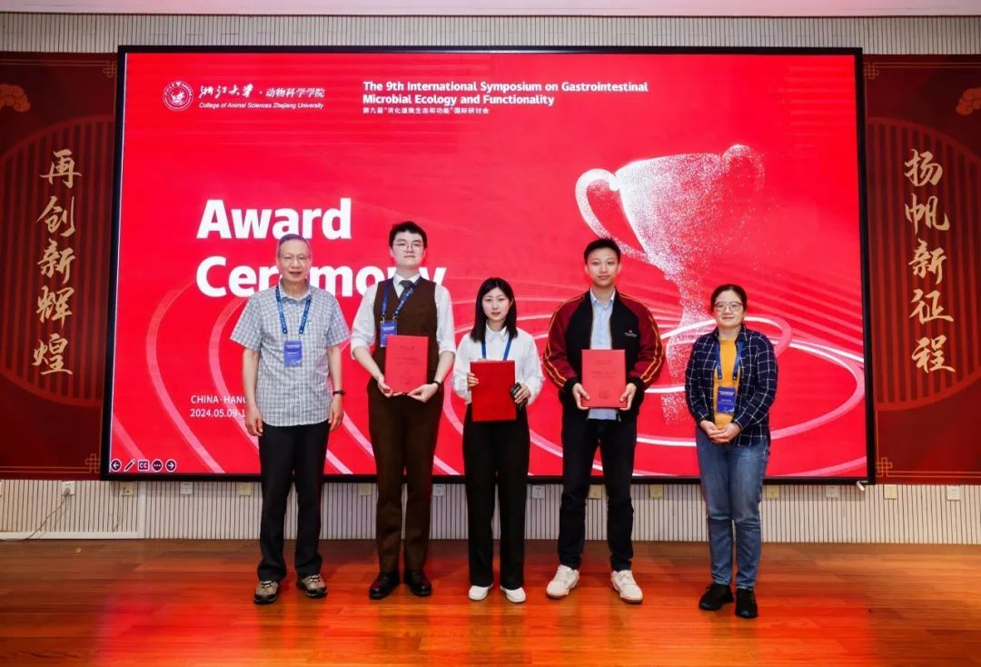 本次会议共有8位海外专家作会议特邀学术报告。此外,为给投身于消化道微生态领域的学生创造一个交流学习的国际平台,会议期间共有19位同学进行口头报告,38位同学进行墙报展示。其中,我院2020级本科生王宇作题为"Effect of dietary cation-anion difference on growth performance, rumen fermentation and microbial communities in fattening Hu sheep"的研究进展报告,2023级博士生余诗强作题为"Adaptation of ruminal microbiota and epithelia to oligotrophic condition in a neonatal lamb model"的研究进展报告,研究生段红伟、张涛、张佳琦、吴建民和胡光辉进行了学术论文墙报展示,经评委专家评议,王宇荣获“优秀学术报告奖”,张佳琦获“优秀墙报奖”。