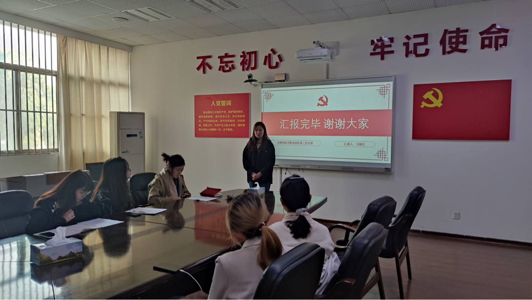会议严格按照党组织党员的转正程序进行。会议开始,首先由支部书记顾潇简短的介绍了预备党员转正程序,然后两位拟转正预备党员乌银红和刘雨婷同志,分别进行了思想汇报以及预备期表现情况总结。两位预备党员表达了入党的决心。接下来由正式党员对拟转正的两位同志进行提问和评价。最后,支部所有正式党员以无记名方式进行投票表决,并当场公布投票结果。投票结果:全票通过乌银红和刘雨婷同志转为正式党员。