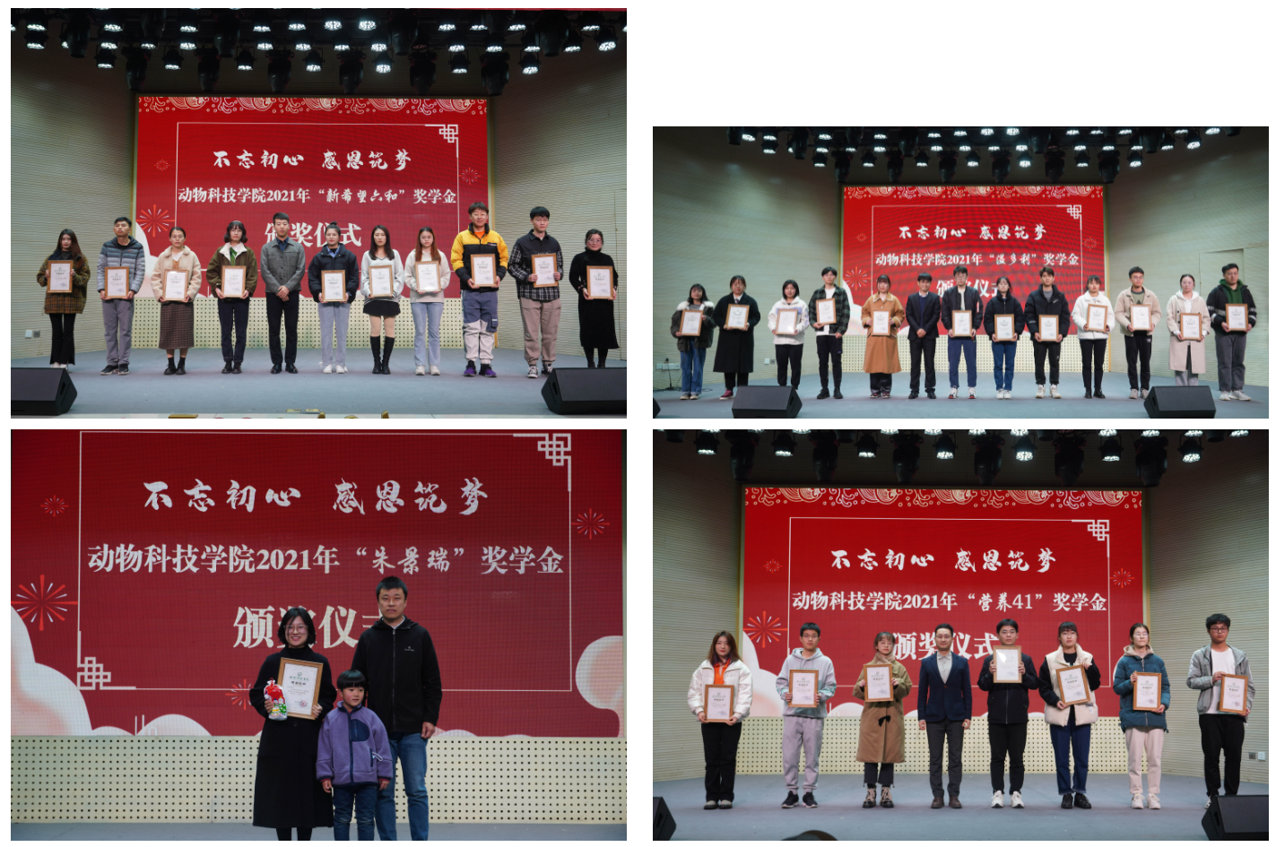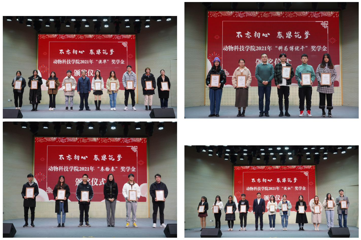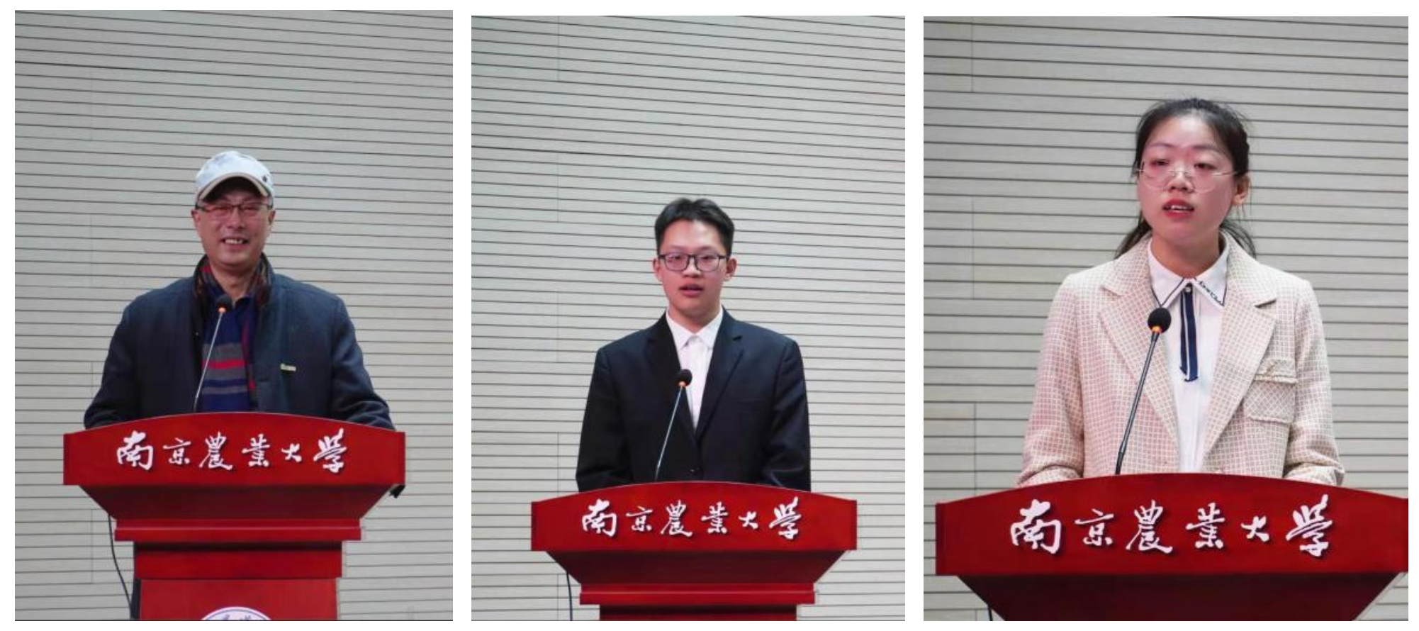 江苏波杜农牧股份有限公司尤佩华先生代表设奖企业致辞,尤先生表达了对获奖同学们的祝贺和鼓励,并以院友的身份向在座的学生们表示了殷切的期许与祝福。本科生获奖代表张泽发言,他表示获奖学子将不辜负学校与学院的培养,不辜负老师与企业的关怀,用最优异的成绩回报母院和行业发展。研究生获奖代表潘振楠感谢设奖企业的慷慨捐助和学院老师的悉心培养,她代表获奖学生表示,将以更加积极向上、奋发进取的决心面对今后的学习与生活。