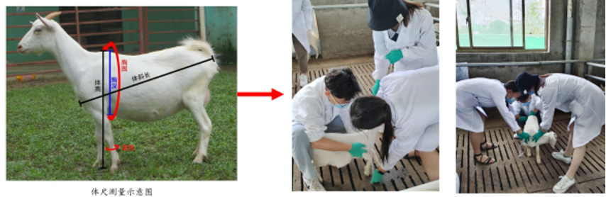 在职业素养教育上。在教育过程中强调价值观的同频共振,使课程课堂成为引导学生学习知识、锻炼意志和养成品行的教育阵地。通过 “羊生产学”实习实践课程,学生学习了育种数据测量方法、掌握了肉羊养殖基地的饲养管理规范和要求,为培养良好的职业素养提供基础。