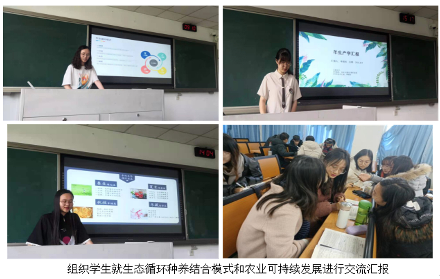 在生态文明教育上,学生了解了养羊业是可以将农业体系的种植业、养殖业、加工业等产业链有效衔接的绿色产业,通过“规模养羊--羊粪制肥--肥料施田--田种饲料--饲料喂养”这一生态循环模式,不仅达到污染零排放的效果,而且改善了种养业的生态环境,形成良性循环,实现生态高效发展。学生通过理论学习和实地参观太仓生态养殖场,切实了解了生态文明建设的复杂性及必要性,增强了开展可持续发展畜牧业的责任感与使命感。