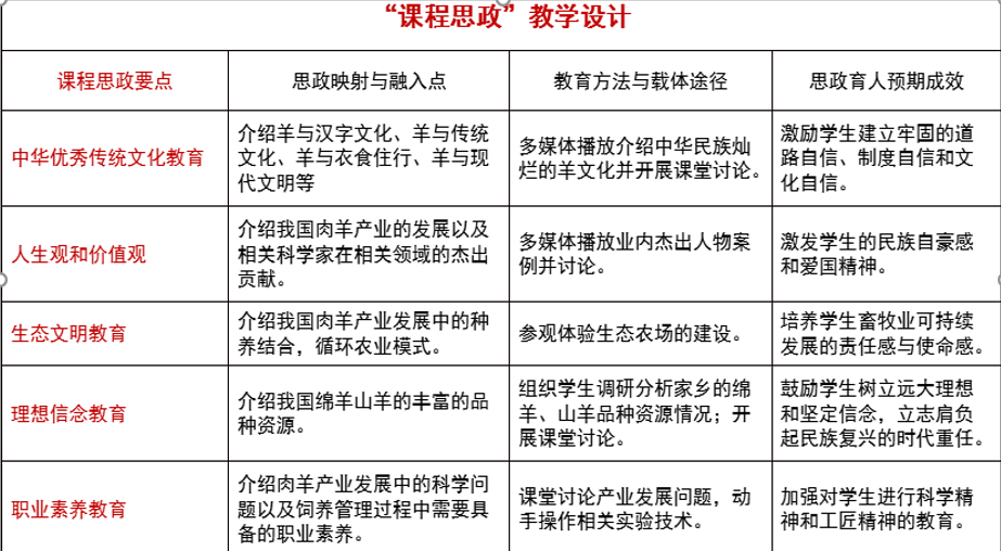 (1)做好“羊生产学”课程思政顶层设计