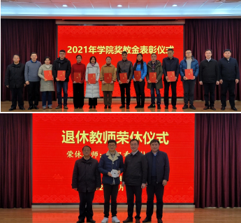 此外,学院还举行了2021年陆汉希老师和杜文兴老师的荣休仪式,并对2021年在学院人才培养、教学科研、社会服务、实验室安全等方面作出贡献的10位教职工进行了表彰。