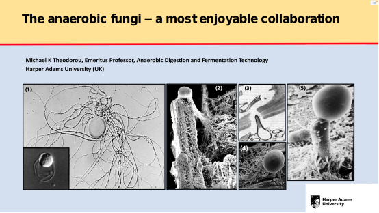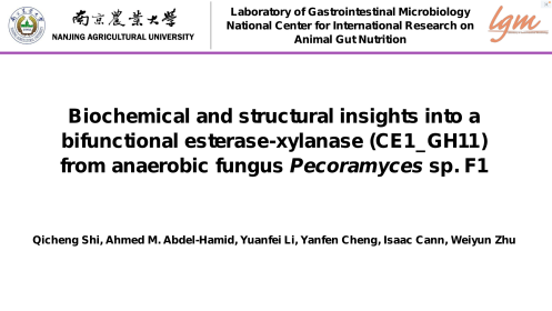 会议分三个时区单元,由Noha Youssef、Yanfen Cheng、Michelle O’Malley三位教授主持。每个时区都由1个主题演讲、4个邀请报告及圆桌讨论三个部分组成。在亚太时区,中心成艳芬教授主持了“厌氧真菌生物技术应用”板块的圆桌讨论,与Michael Lebuhn, Xavier Fonoll, Kevin Solomon, Sumit Singh Dagar等专家共同讨论并解答了与会者提出的问题。中心客座教授Michael K Theodorou做了“The Anaerobic Fungi: A Most Enjoyable Collaboration”的主题演讲,系统介绍了厌氧真菌近些年来的相关研究进展。中心博士研究生施其成做了“来自厌氧真菌Pecoramyces sp. F1的一种双功能酯酶-木聚糖酶的生化特性和结构表征”的学术报告。