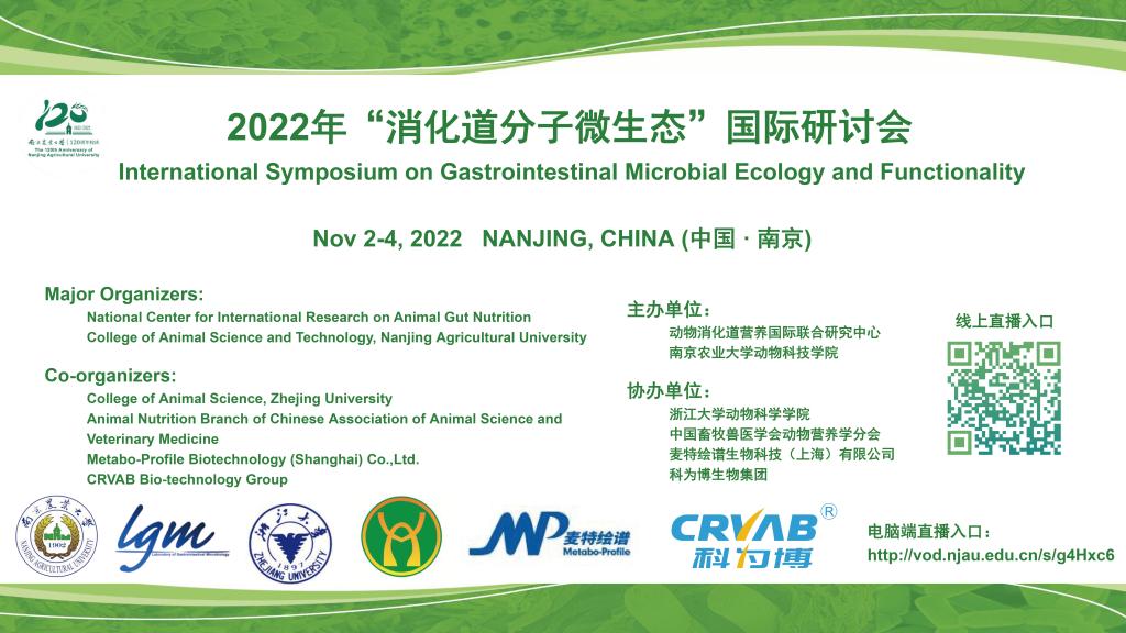 消化道分子微生态是随着分子生物学在营养学、生理学、微生物学等学科的深入应用形成的一门交叉学科。随着人们对消化道微生物功能的逐渐认识,国内外包括反刍动物瘤胃微生物及单胃动物胃肠道微生物的研究十分活跃。为了促进消化道微生物研究领域的同行专家深入交流,探讨消化道微生物研究的最新进展及研究前景,分别于2005年、2010年、2014年及2018年在南京举办了首届、第二届、第四届及第六届“消化道分子微生态”国际研讨会,于2012年、2016年、2021年在杭州举办了第三届、第五届和第七届“消化道分子微生态”国际研讨会。为促进学科发展,给国内该领域专家和国际同行搭起相互交流和学习的桥梁,动物消化道营养国际联合研究中心拟于2022年11月2-4日在南京召开2022年“消化道分子微生态”国际研讨会暨动物消化道微生物专题组第五次会议。