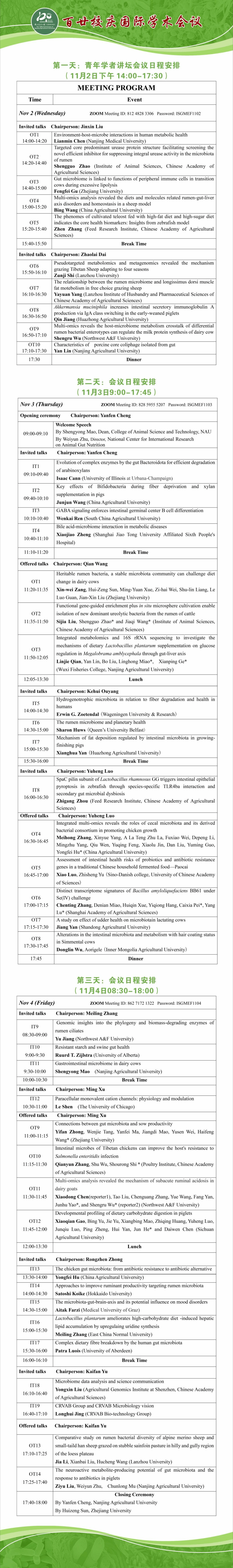 11月3-4日:国外专家邀请报告(英文)、国内专家特邀报告(英文)、研究生报告(英文)