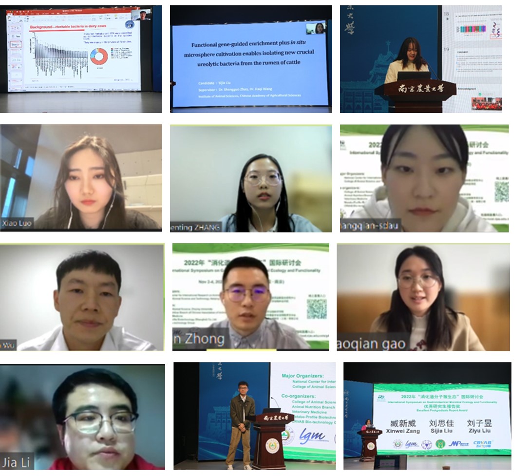 来自bwin必赢3003、中国农业大学、浙江大学、兰州大学、四川农业大学、东北农业大学、山东农业大学、中国农业科学院动物科学研究所、中国农业科学院家禽研究所、中国科学院大学中丹学院、上海市农业科学院和内蒙古农业大学等12所单位的14位研究生进行了研究进展报告。为鼓励在消化道分子微生态研究领域崭露头角的研究生,大会通过专家评审和线上投票选出3位“优秀研究生报告奖”。会议的评选结果由朱伟云教授进行揭晓,bwin必赢3003研究生刘子昱、中国农业科学院动物科学研究所研究生刘思佳、浙江大学研究生臧新威等3位报告人获奖。